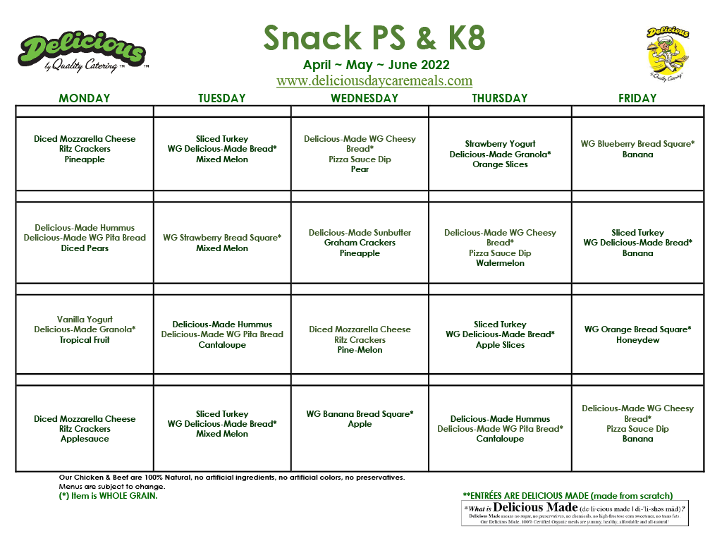 We’re not a catering company that just happens to have a national school lunch program. We specialize in delivering fresh, appealing and nutritious meals and snacks created specifically for kids. Delicious has been serving daycares, preschools and grade schools in the Northern Illinois and Southern Wisconsin region for over 40 years. We currently deliver more than 13,000 meals each day to over 200 locations.